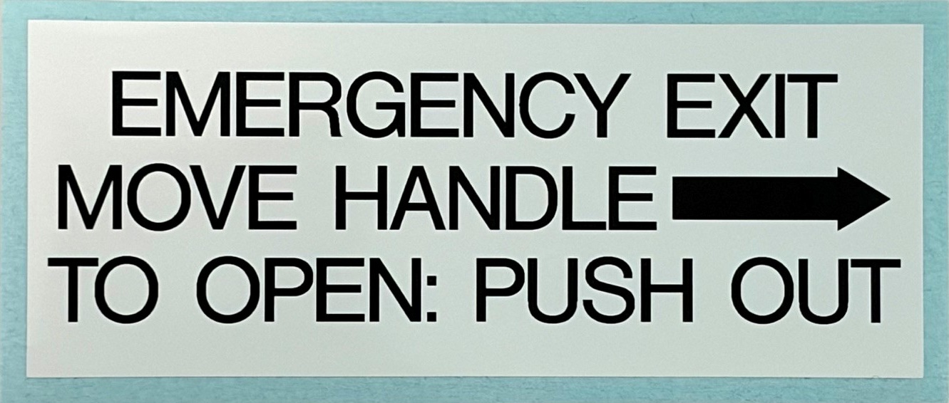 Emergency Exit Move Handle To Open: Push Out- 2" X 5" Black on White, RIGHT ARROW