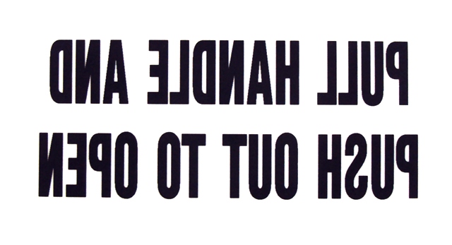 PULL HANDLE AND PUSH OUT TO OPEN, Black on Clear, Face Adhesive (2"x4") (M62FA)(P7)