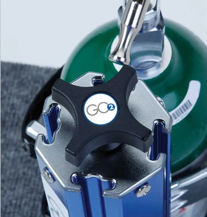 Quick release lever adjusts easily to accommodate O2 cylinders sizes from M2 to E.