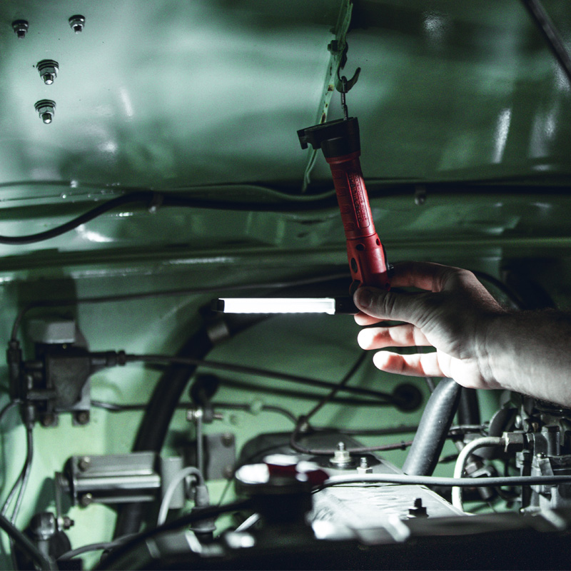Inspect, identify, and repair with the Strion Switchblade®. Five lights in one: a droplight, hands-free light, UV light, bright white light, and a high CRI light with Streamlight’s Color-Rite Technology®.